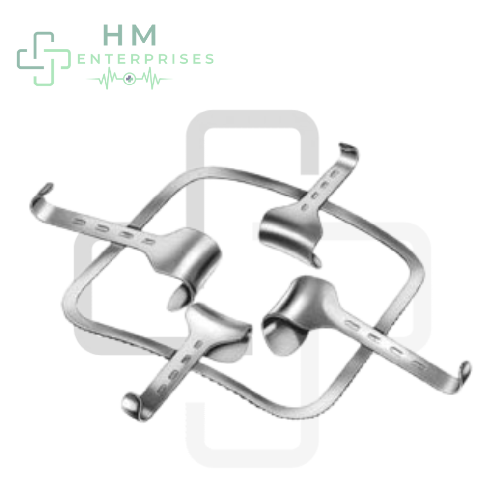 The Kirschner Abdominal Retractor (RI-000044) is a precision-engineered surgical instrument designed to deliver wide, stable, and self-retaining exposure during abdominal operations. Featuring two curved lateral blades (“wings”) attached to a central blade, this retractor allows for adjustable retraction angles, ensuring optimal surgical access and visibility. Its self-retaining mechanism eliminates the need for constant manual holding, reducing surgeon fatigue and enhancing procedural efficiency. Crafted from premium surgical-grade stainless steel, it offers exceptional durability, corrosion resistance, and compatibility with repeated sterilization. Smooth, precision-finished edges minimize tissue trauma, making it an ideal choice for complex abdominal surgeries.